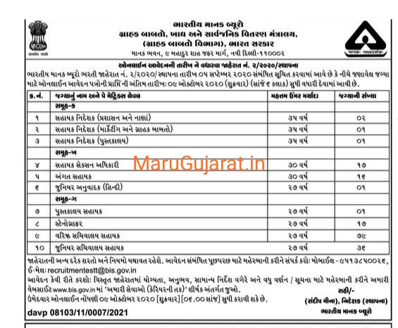 Bureau of Indian Standards (BIS) Recruitment for Various Posts 2020
